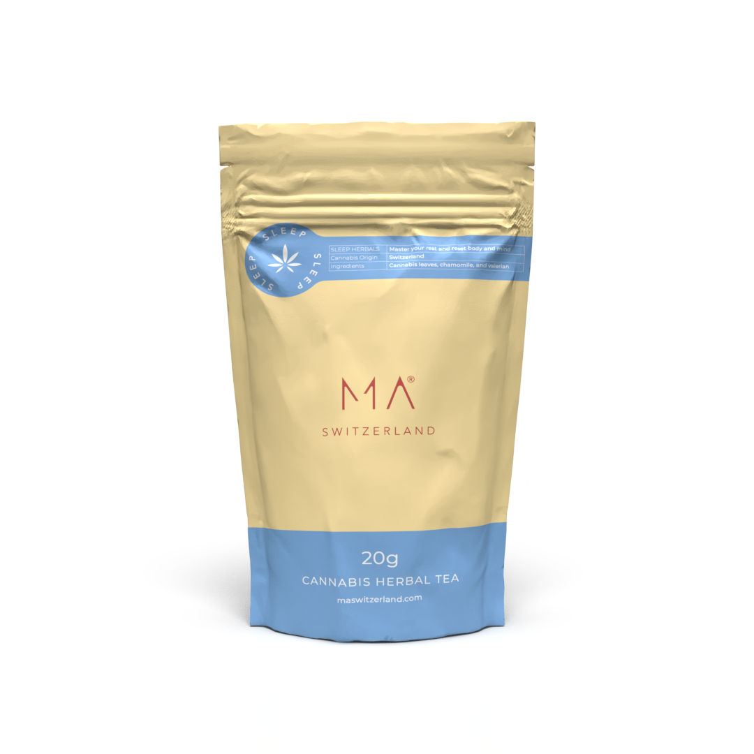 Voici MA SLEEP Herbal Tea, un mélange d'ingrédients entièrement naturels conçu pour vous aider à vous détendre et à profiter d'un sommeil réparateur. Notre thé au chanvre combine la saveur terreuse des feuilles de chanvre avec les propriétés calmantes de la camomille et de la valériane.